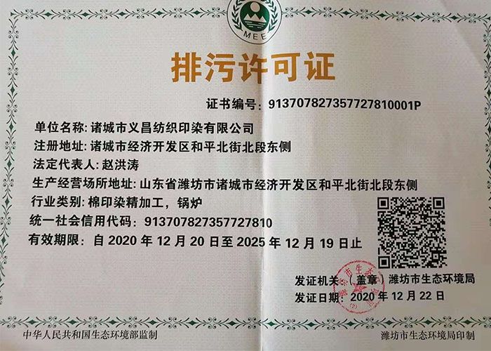 諸城市義昌紡織印染有限公司 通訊地址:山東諸城市開發(fā)區(qū)和平北街北段東側(cè)